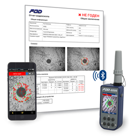 При работе с рефлектометрами фирмы FOD видеоскоп автоматически передает файл изображения на рефлектометр через Bluetooth. Затем файл записывается в папку с рефлектограммами для последующего оформления в виде протокола.