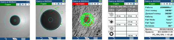 - Автоматический анализ качества разъема на соответствие стандарту IEC-61300-3-35 (возможность установить собственный стандарт);