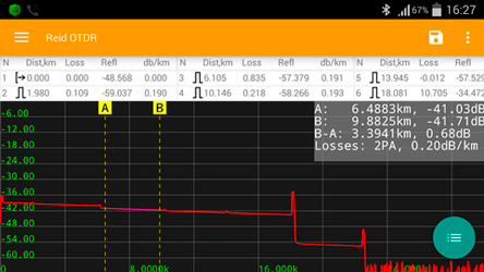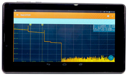• Связь по Bluetooth с планшетами и смартфонами под управлением Android. Разработанная специалистами фирмы СТЭЛЛ программа REID OTDR позволяет выполнять все действия с прибором находясь от него за несколько метров. Программу REID OTDR можно бесплатно скачать в Google Play;