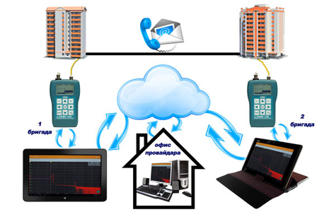При этом управление прибором РЕЙС-750 и работа с рефлектограммами осуществляется с большого экрана. Кроме того, в этом режиме производится передача данных в облачное хранилище данных. Это обеспечивает работу прибора РЕЙС-750 в группе со специалистами, расположенными удаленно от места измерения.