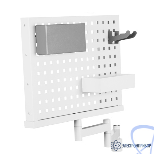 Система позволяет размещать приборы, инструмент, мелкие комплектующие в лотках в удобном для пользователя положении. Кронштейн крепится на боковые стойки всех стандартных серий рабочих мест.