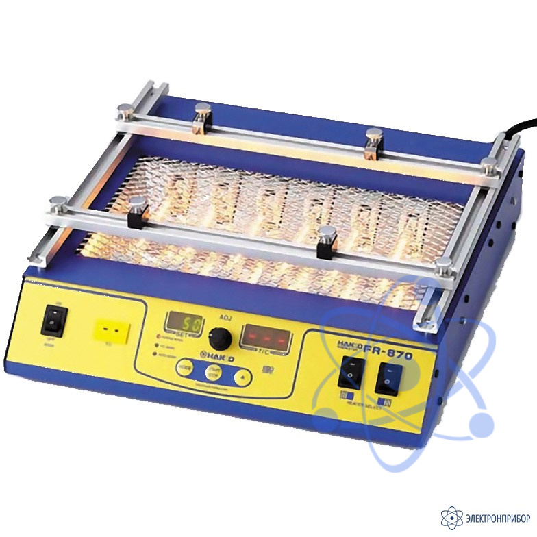 HAKKO FR-870 ESD настольный нагреватель плат, разработанный для предварительного разогрева печатных плат, чтобы облегчить процесс пайки и демонтажа компонентов. Рекомендуется для работы с платами большой массы, требующими большого количества тепла, которое при пайке отдается паяльником или горячим воздухом от термовоздушной станции. Это устройство особенно полезно при пайке бессвинцовыми припоями.