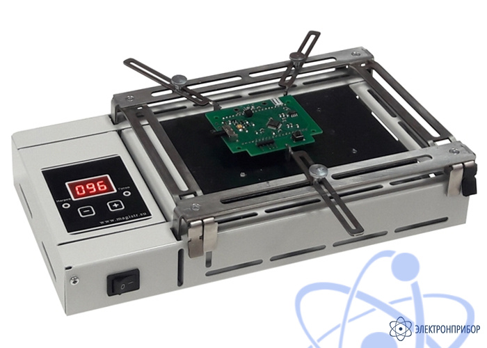 Паяльная станция Магистр Ц20-T1.0-БЛ 100×150мм 200В 350 °C с цифровым регулятором температуры предназначена для предварительного подогрева печатных плат и электронных компонентов при операциях ручной пайки и ремонте электроники.