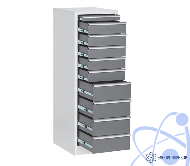 Драйвер-шкаф с 10 ящиками ДР-10/1 ESD, антистатическое исполнение – для хранения инструментов и компонентов. Может использоваться в качестве дополнительного элемента стола.