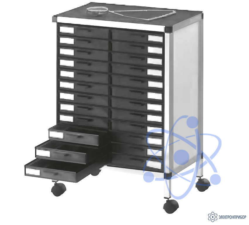 - В комплекте 24 выдвижных ящика из проводящего пластика;