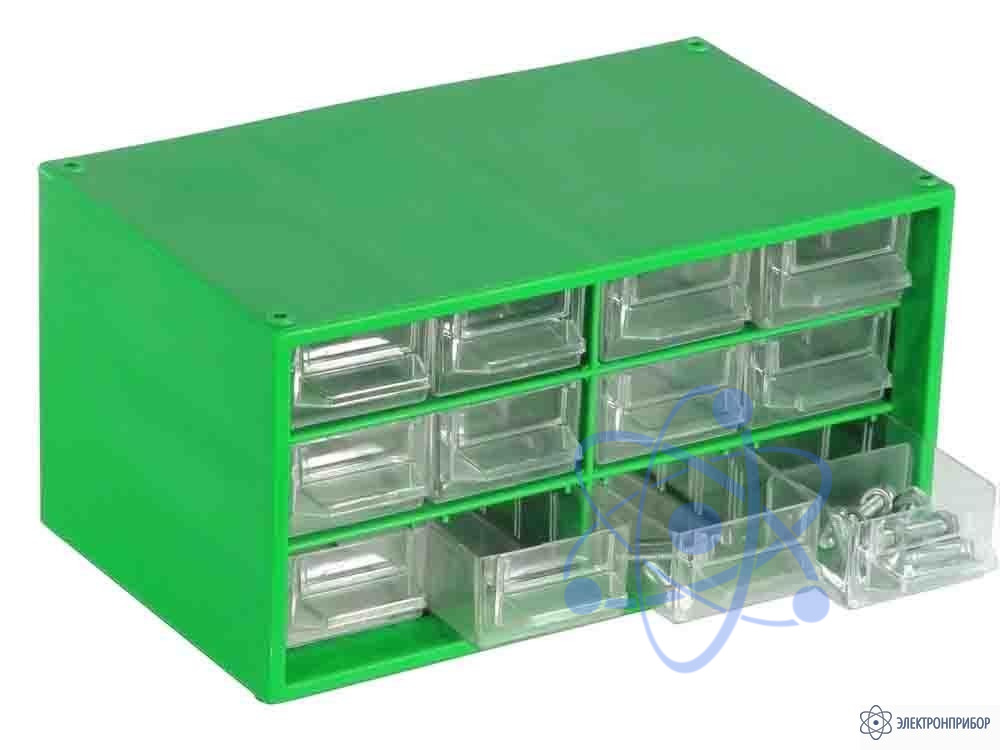- Пластиковый бокс на 12 отделений с перегородкой для хранения радиодеталей и крепежа.