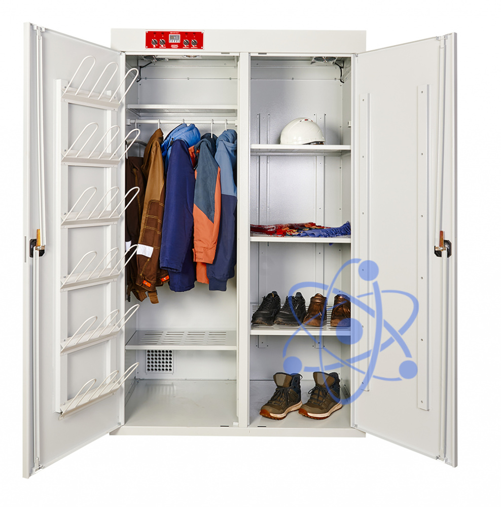 Данная модель шкафа сушильного предназначена для сушки пяти комплектов (что включает в себя: 5 комплектов зимней (10 комплектов летней) одежды, 5 пар обуви, 5 пар перчаток), шкаф надежно закрывается ключом.