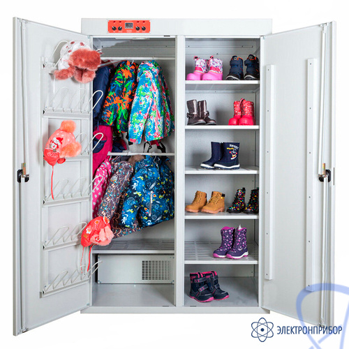 Шкаф сушильный РШС-15-120-18 предназначен для сушки десяти комплектов детской одежды (что включает в себя: 10 комплектов детской одежды, 10 пар детской обуви), шкаф надежно закрывается ключом.