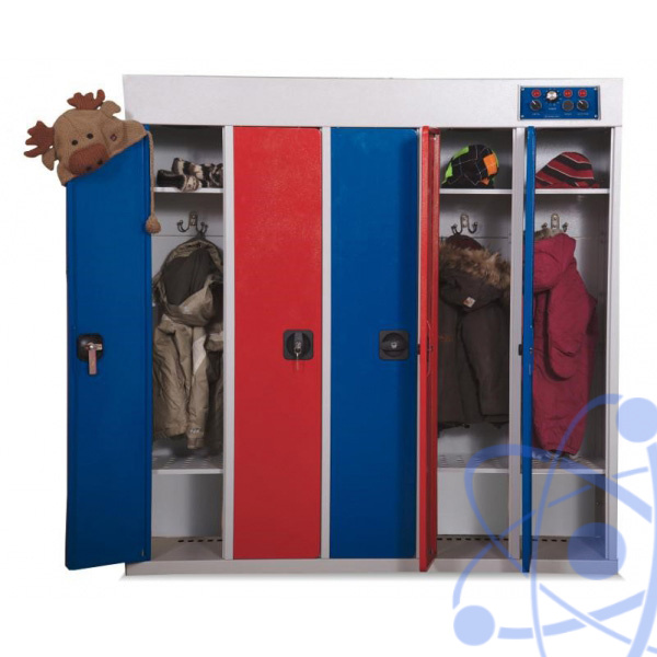 Данная модель шкафа сушильного предназначена для сушки пяти комплектов детской одежды (включают 5 комплектов одежды, 5 пар обуви, 5 пар перчаток). Шкаф состоит из пяти секций.