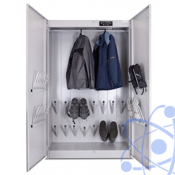 Данная модель сушильного шкафа предназначена для сушки восьми комплектов одежды, спецодежды (что включает в себя: 8 комплектов одежды, 8 пар обуви, 8 пар перчаток), шкаф надежно закрывается ключом.