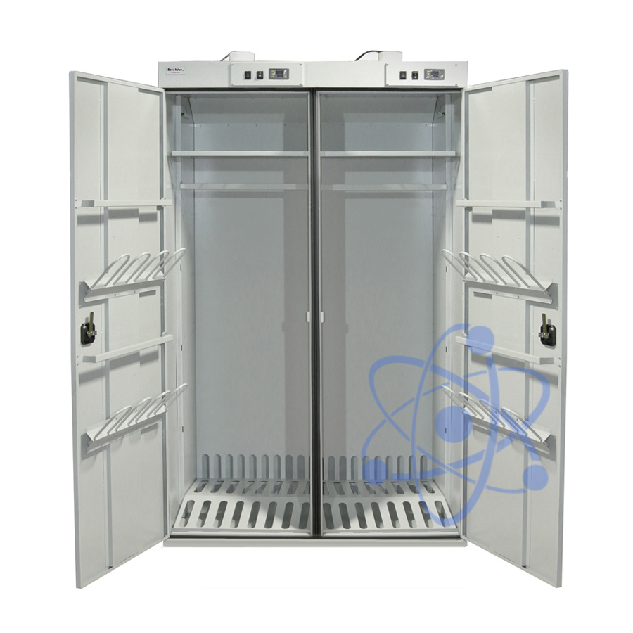 Шкаф сушильный ШС-4 Т универсальная модель рассчитана до 8 комплектов одежды, обуви и аксессуаров. Шкаф состоит из двух независимых секций, позволяющих использовать шкаф по мере наполнения. По запросу внутреннее наполнение секций может быть изменено по потребностям клиента. В секциях могут располагаться дополнительные полки, штанги, навесы для аксессуаров или обуви.