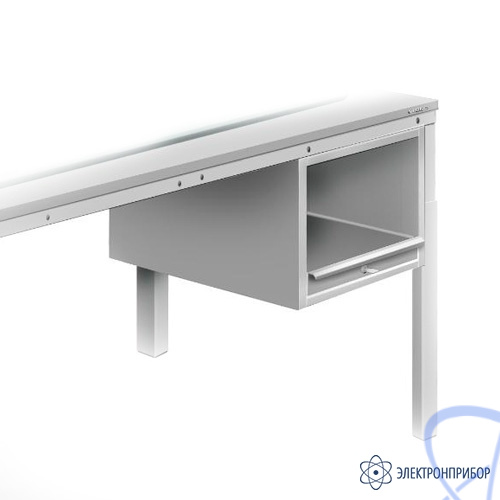 Подвесная тумба для принтера для упаковочного стола ТПП позволяет устанавливать принтер и другое необходимое оборудование под столом, имеет выдвижную полку с ручкой и механизм фиксации в задвинутом положении.
