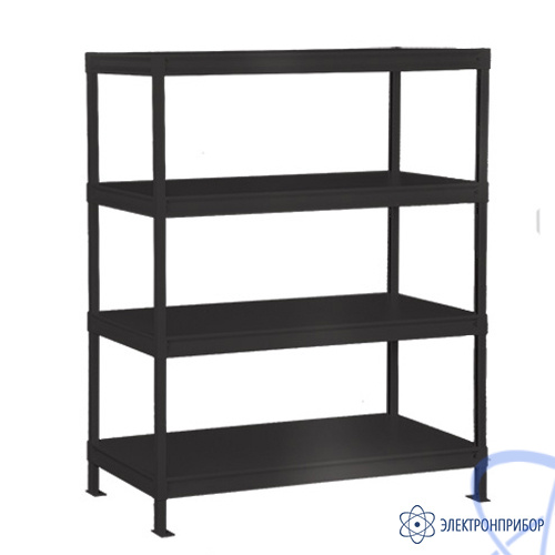 Стеллаж металлический усиленный с плавно регулируемыми по высоте полками. Не требует дополнительного выравнивания полов для установки. В стандартной комплектации стеллаж имеет 4 полки.
