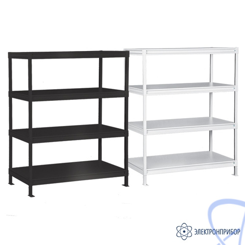 Стеллаж металлический усиленный с плавно регулируемыми по высоте полками. Не требует дополнительного выравнивания полов для установки. В стандартной комплектации стеллаж имеет 4 полки.