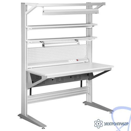 Рабочий стол АЛЬЯНС Автоматический АЛ/А-С2-Д-18 ESD поставляется в комплекте со встроенным механизмом регулировки по высоте, пультом, перфопанелью, электропанелью, основной полкой и основным светодиодным верхним освещением.