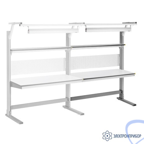 Стол комплекта АЛ/Д-С-15-7 ESD в антистатическом исполнении является приставным к основному столу серии АЛЬЯНС, позволяя создавать непрерывное рабочее пространство из основного и одного/нескольких дополнительных столов. Установка дополнительного стола осуществляется посредством его крепления к основному столу Альянс справа или слева и к входящей в комплект 1 боковой алюминиевой стойке с противоположной стороны.