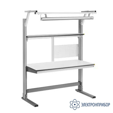 - Удобная система регулировки рабочих поверхностей (столешница, полка, освещение) по высоте, в том числе для работы в положении стоя;