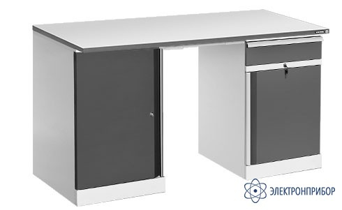 Стол рабочий КОНСТАНТ CP-15-7+ТМБ-01+ТМБ-02 ESD, антистатическое исполнение укомплектован тумбой с дверцей ТМБ-01 ESD и тумбой с 1 ящиком ТМБ-02 ESD.