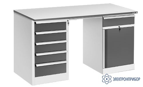 Стол рабочий КОНСТАНТ CP-18-7+ДР-05+ТМБ-02 ESD, антистатическое исполнение укомплектован планшетным драйвером ДР-05/1 ESD и тумбой с 1 ящиком ТМБ-02 ESD.