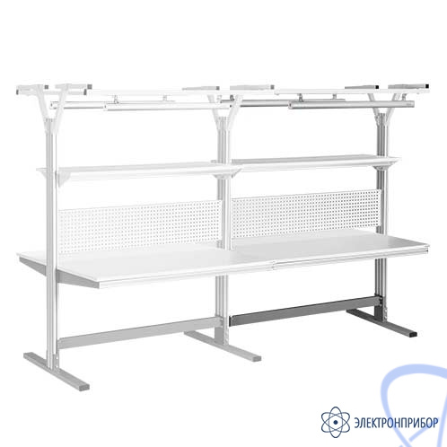 Комплект АЛЬЯНС АЛ-О/Д-С2-Д-18-7 островной дополнительный со светодиодным светильником и диммером - два зеркально расположенных рабочих стола на алюминиевом профиле с одним боковым профилем. Столы комплекта являются приставными к основному островному комплекту серии АЛЬЯНС, позволяя создавать непрерывное рабочее пространство из основного и одного/нескольких дополнительных столов.