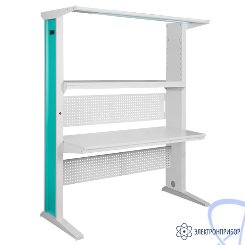Стол рабочий ГМ-15-7/Л поставляется в комплекте: стол рабочий с боковыми стойками, основная полка, верхнее освещение, верхняя и нижняя перфопанели и боковой энергоблок. Быстросъемные боковые панели обеспечивают удобство доступа к внутренним коммуникациям. Возможна поставка в 2 модификациях – с правым (ПР в артикуле) или левым (Л в артикуле) энергоболоком в боковой панели. Встроенный энергоблок имеет 6 розеток и кнопку выключения.
