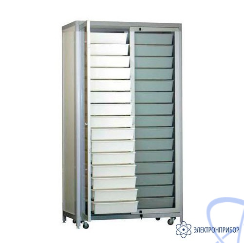 Стильный современный дизайн стойки комплектовочной с дверками АРМ-2291-С придают дверцы, изготовленные из рамочного алюминиевого профиля патентованной системы и тонированных стекол. Стойка закрывается двумя стеклянными дверцами с замком. Обладает такими важными качествами, как мобильность, универсальность размещения элементов. Опорой являются 4 винтовые ножки, но для перемещения стойки достаточно максимально ввернуть ножки – и опорой становятся колеса.