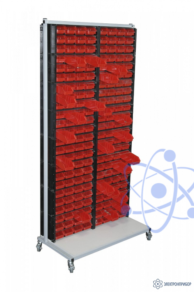 Стойка удобна для хранения компонентов и мелких деталей ( SMD компонентов, метизов и т.д.) как непосредственно на рабочем месте, на складе или на комплектовочном участке.