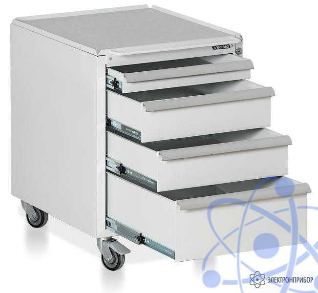 Стальная подкатная тумба для хранения инструментов и компонентов ТП-02/S ESD оснащена центральным замком. Три выдвижных ящика с механизмом легкого скольжения (телескопические направляющие) выдвигаются на 360 мм. К тумбе монтируются 4 колесные опоры диаметром 75 мм (материал - резина), из них две с механизмом фиксации. Антистатическое исполнение