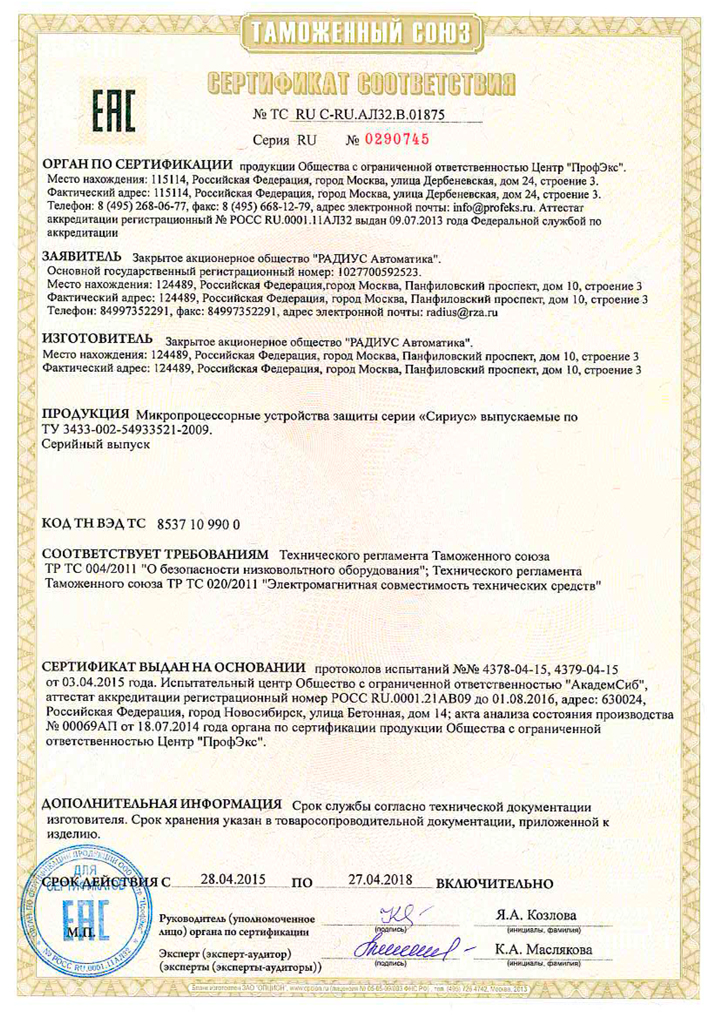 «Сириус-2-ТН-К» - фирменное название реле;
