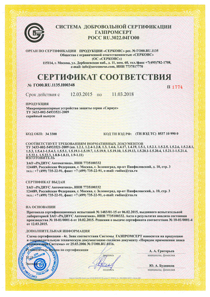 «Сириус-2-ТН-К» - фирменное название реле;