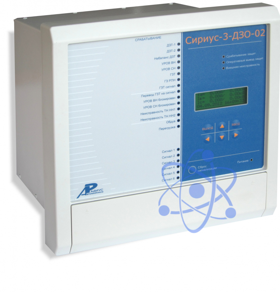 Устройство микропроцессорной защиты «Сириус-3-ДЗО-02» предназначено для выполнения функций основной дифференциальной защиты силового трансформатора (автотрансформатора) и ошиновки класса напряжения 6-220 кВ (в том числе в случаях присоединения их к системе через два выключателя).