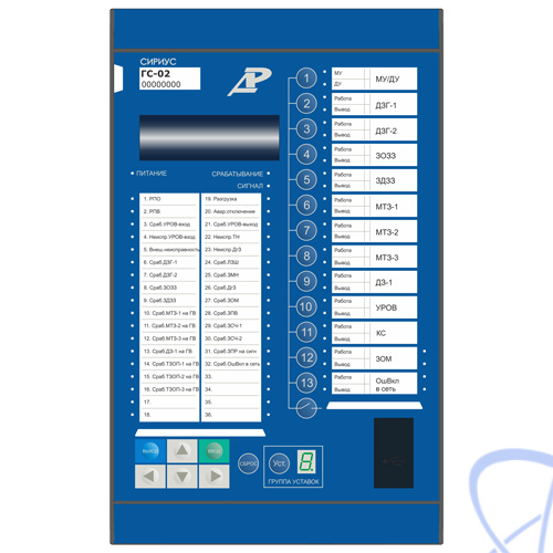 Сириус-ГС-02-0-1-A5T-K436-41 — терминал защиты и автоматики синхронных генераторов малой мощности