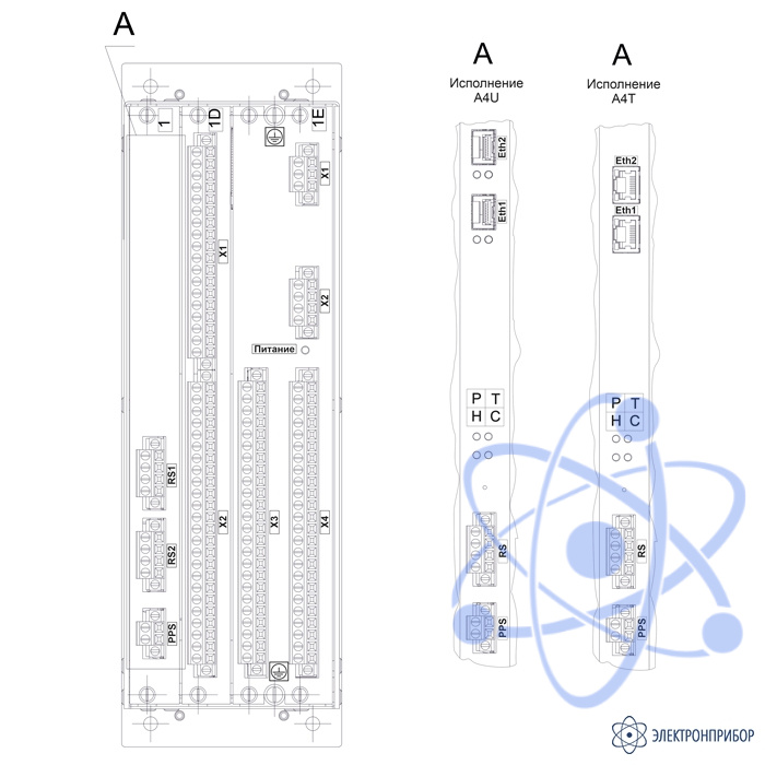 А4U – один интерфейс RS-485, 2 интерфейса Ethernet с разъемом для SFP-модулей;