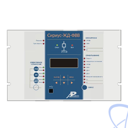 Микропроцессорное устройство защиты «Сириус-ЖД-ФВВ» предназначено для выполнения функций релейной защиты, автоматики, управления, измерения и сигнализации фидера выключателя ввода в составе тяговых подстанций электрифицированных железных дорог переменного тока напряжением 27,5 кВ.